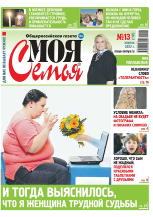 Общероссийская газета «Моя Семья» существует с 2000 года и входит в число самых популярных изданий России. Газета является не просто средством информации; для многих людей стало жизненной потребностью прочитать её раз в неделю – это сродни желанию увидеться с родственниками, поговорить с друзьями. Подавляющее большинство читателей не пропускает ни одного номера. «Моя Семья» задумана как газета о человеческих отношениях. Редакция делает упор на историях из жизни, и многие публикации представляют собой короткие рассказы. Главной основой газетных заметок являются письма читателей, что делает «Мою Семью» уникальной – все истории здесь подлинные.