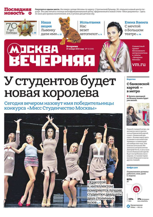 Вечером на страницах «Вечерки» появляются эксклюзивные интервью ньюсмейкеров культуры и шоу-бизнеса, репортажи журналистов по вечерней Москве, афиша нашего города. Один раз в неделю выходит специальный студенческий вечерний номер.