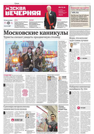 «Вечерняя Москва» — ежедневная российская вечерняя газета, старейшее из вечерних изданий в России, учрежденное в 1923 году. Выходит пять дней в неделю, кроме субботы и воскресенья. Отличается тем, что рассказывает о событиях еще не завершившегося дня. Оперативно освещает хронику и особенности жизни Москвы, охватывает все слои общества и большинство профессиональных и возрастных групп читателей.Издание представлено тремя выпусками – утренним ежедневным, вечерним (выходит три раза в неделю), еженедельным (выходит по четвергам).