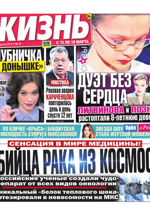 Еженедельная газета, предназначенная для семейного чтения. Основные рубрики: самые скандальные и интересные события прошедшей недели, политический комментарий Леонида Шахова, пикантные истории из звездной жизни, советы профессионального психолога, действенные рецепты здоровья, гороскоп, кроссворд, конкурсы, сканворды, розыгрыши билетов в кинотеатры и множество других призов. Приложения к газете «Жизнь»: «Телеэкран» - телепрограмма с подробными анонсами кино и сериалов, «Овертайм» - спортивное обозрение.