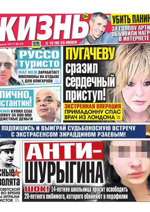 Еженедельная газета, предназначенная для семейного чтения. Основные рубрики: самые скандальные и интересные события прошедшей недели, политический комментарий Леонида Шахова, пикантные истории из звездной жизни, советы профессионального психолога, действенные рецепты здоровья, гороскоп, кроссворд, конкурсы, сканворды, розыгрыши билетов в кинотеатры и множество других призов. Приложения к газете «Жизнь»: «Телеэкран» - телепрограмма с подробными анонсами кино и сериалов, «Овертайм» - спортивное обозрение.