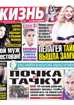 Еженедельная газета, предназначенная для семейного чтения. Основные рубрики: самые скандальные и интересные события прошедшей недели, политический комментарий Леонида Шахова, пикантные истории из звездной жизни, советы профессионального психолога, действенные рецепты здоровья, гороскоп, кроссворд, конкурсы, сканворды, розыгрыши билетов в кинотеатры и множество других призов. Приложения к газете «Жизнь»: «Телеэкран» - телепрограмма с подробными анонсами кино и сериалов, «Овертайм» - спортивное обозрение.