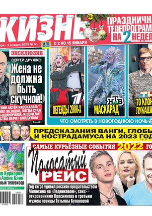 Еженедельная газета, предназначенная для семейного чтения. Основные рубрики: самые скандальные и интересные события прошедшей недели, политический комментарий Леонида Шахова, пикантные истории из звездной жизни, советы профессионального психолога, действенные рецепты здоровья, гороскоп, кроссворд, конкурсы, сканворды, розыгрыши билетов в кинотеатры и множество других призов. Приложения к газете «Жизнь»: «Телеэкран» - телепрограмма с подробными анонсами кино и сериалов, «Овертайм» - спортивное обозрение.